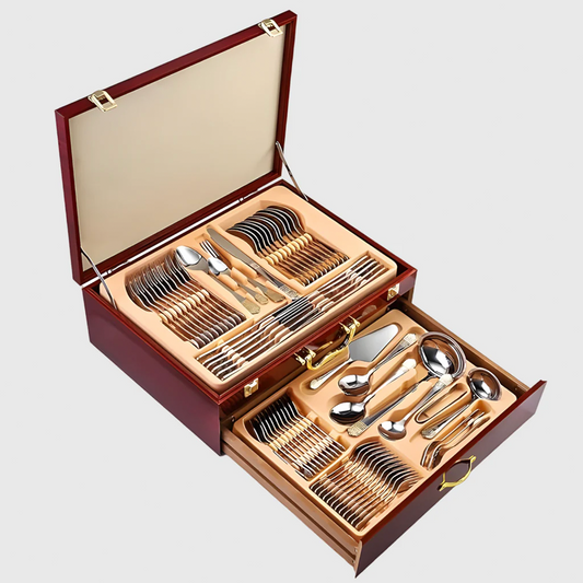72 DARAB EVŐESZKÖZ 12 SZEMÉLYRE FA TOKBAN