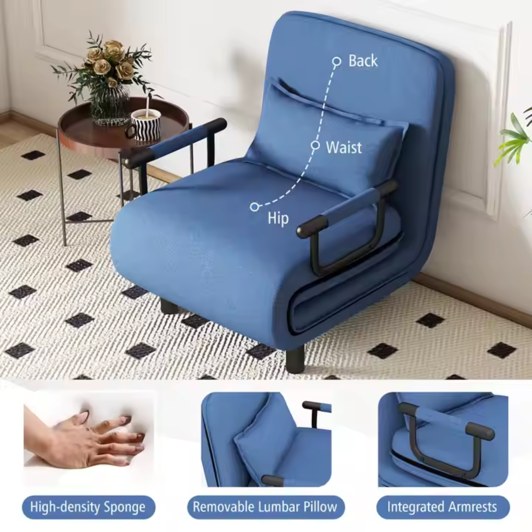 Kényelmes, praktikus és modern megoldást keres egy kis helyre? Ez egy kanapé 3u1 tökéletes keverék kompaktság és kényelem.. A karosszékből azonnal nyugágyakká vagy ágyakká alakul, attól függően, hogy szüksége van-e olvasási, pihenési vagy alvási helyre.