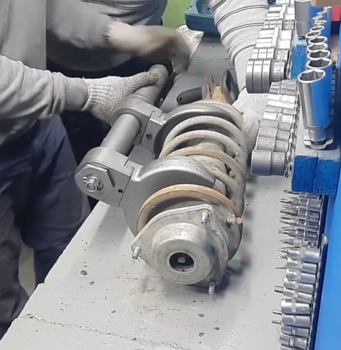 Megfelelő nyomószerszám lengéscsillapító rugók cseréjéhez McPherson rendszer lengéscsillapítóinak cseréjekor.