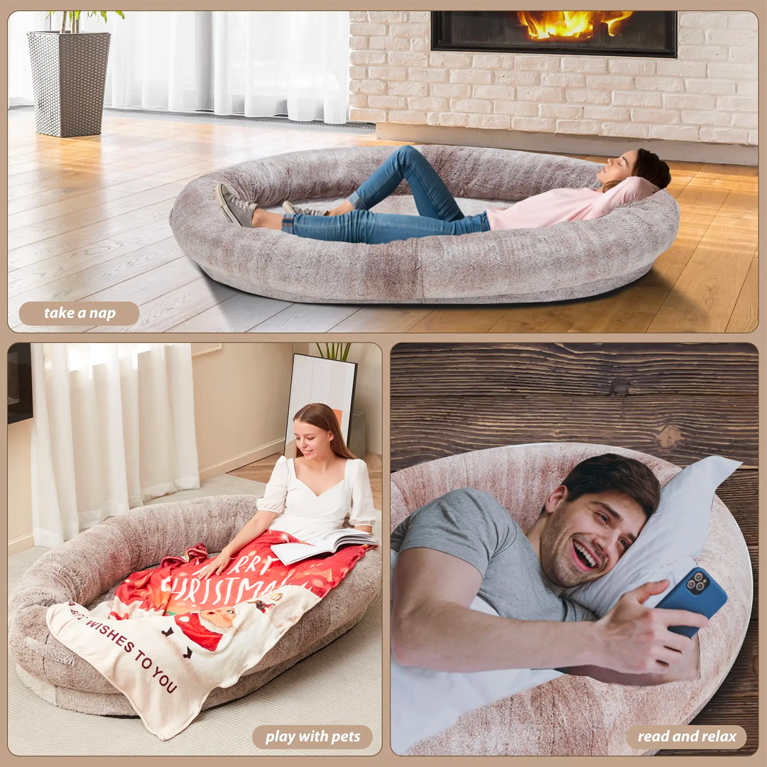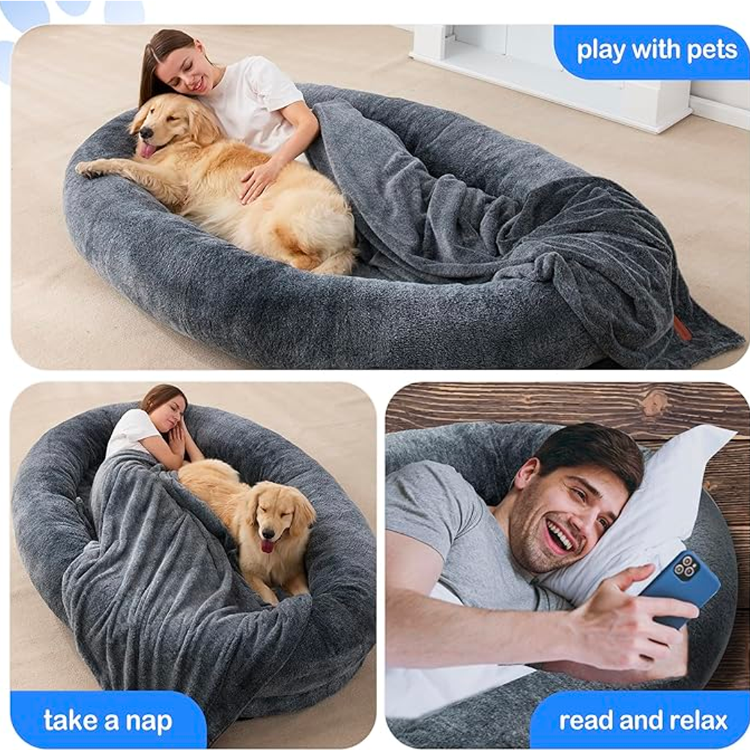 Intim kapcsolat és érdekes interakció: Az Emberi Kutya Ágy intim kapcsolatot ösztönöz közted és háziállata között. Meghívó kialakítása arra ösztönzi szőrös barátját, hogy keressen kényelmet és társaságot az Ön oldalán.
