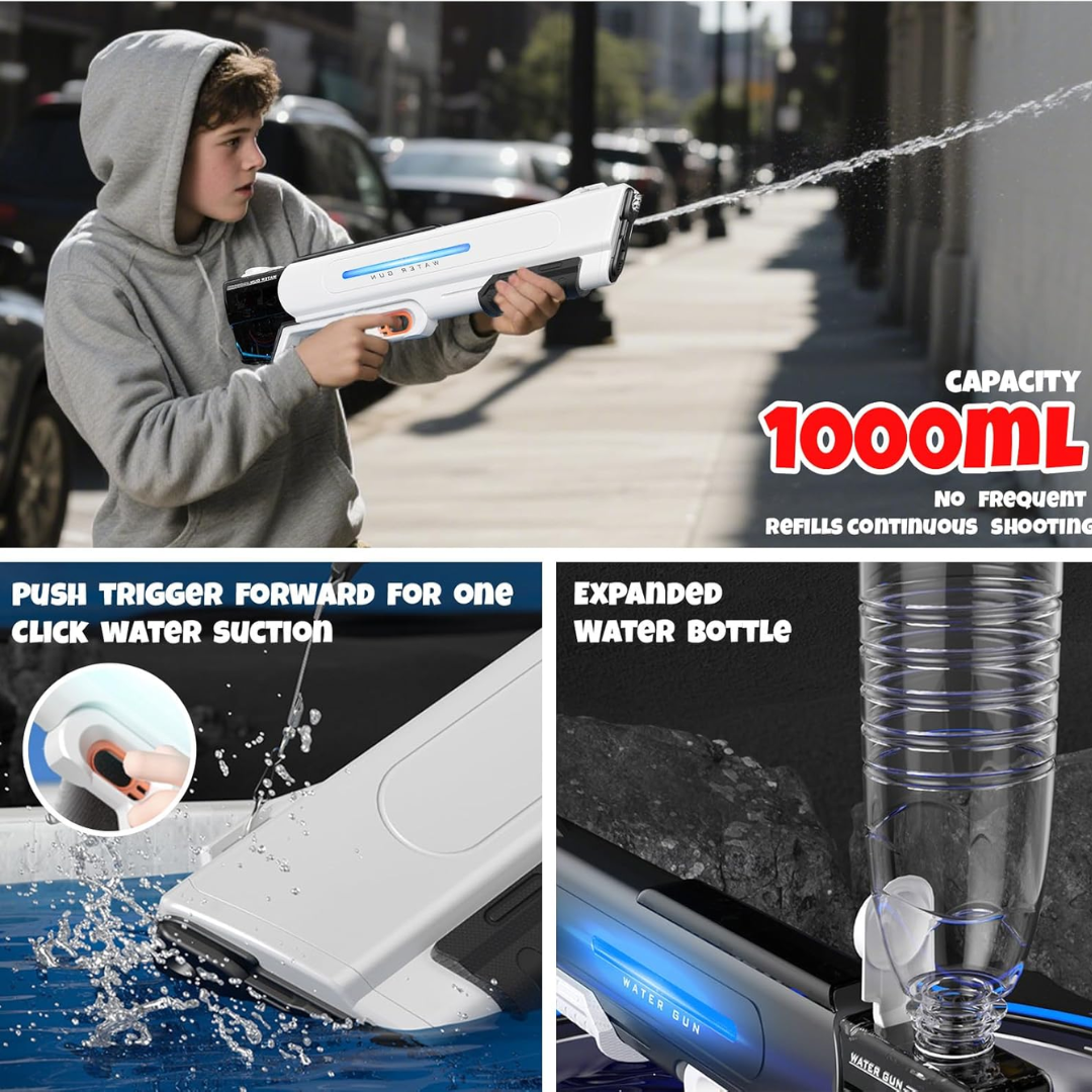Lépj be még több mókába a nyári napokon ezzel elektromos pisztoly a vízen nagy hatótávolságú és vonzó LED-lámpákkal. Ideális gyermekek és felnőttek számára, több órás szórakozást biztosít a medencénél, a strandon vagy az udvaron.
