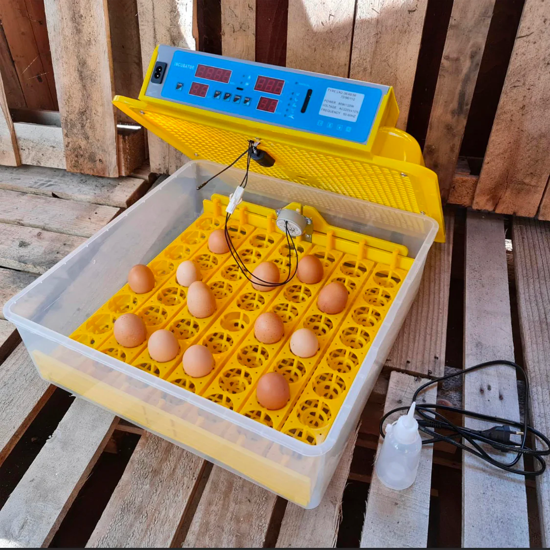 Inkubátor 56 tojás számára, hőmérséklet- és páratartalom-szabályozással