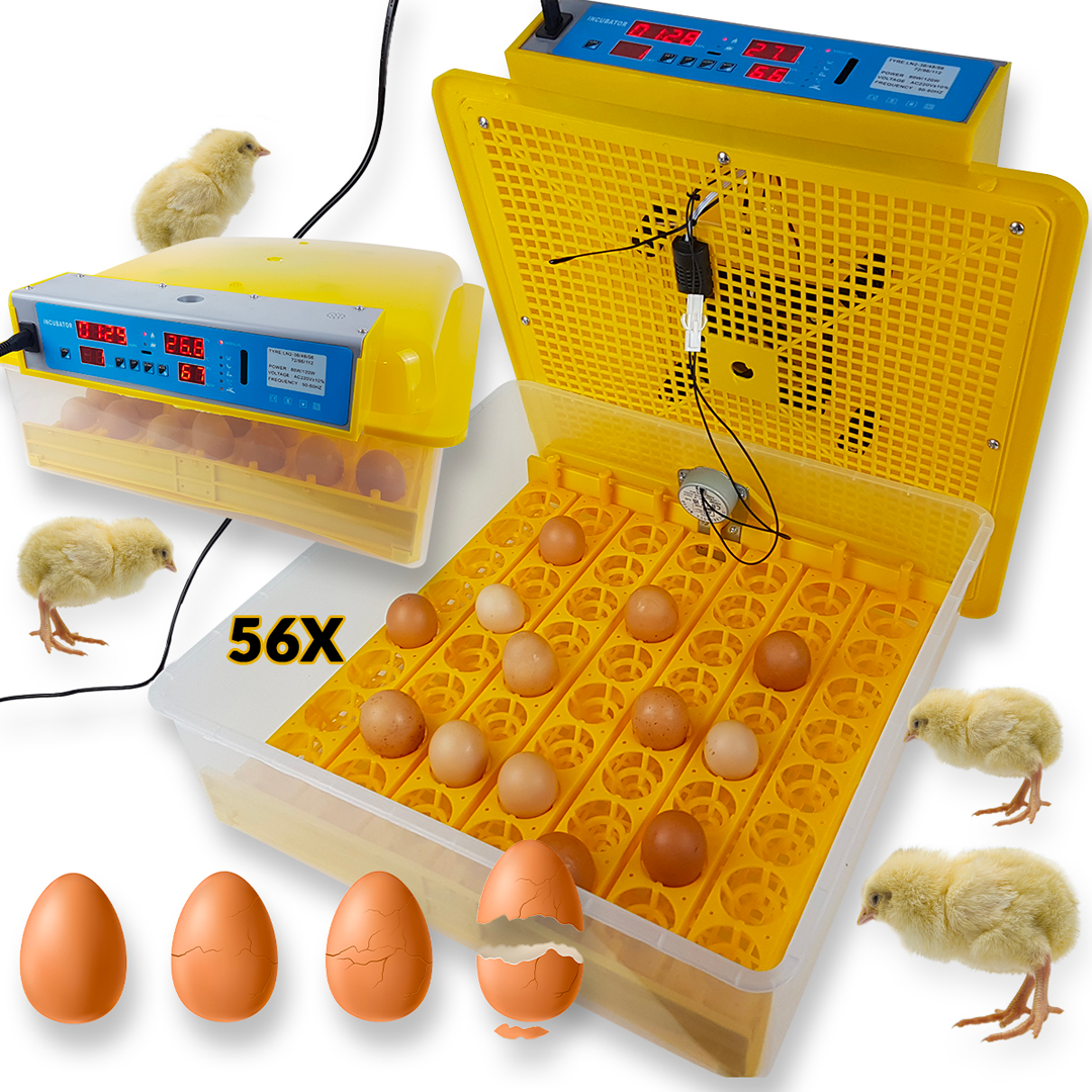 Nagy kapacitás: Ezzel az inkubátorral egyszerre akár 56 tojást inkubálhat, így ideális minden szintű baromfitenyésztő számára.