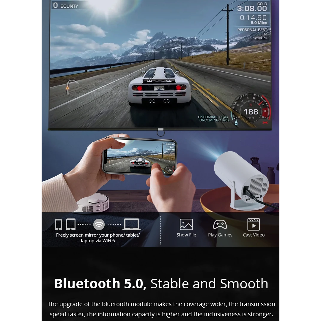 - Mindkét 2.4G és 5G WiFi frekvenciasáv támogatásával a projektor stabil és gyors vezeték nélküli kapcsolatot kínál az Ön kedvenc eszközeiről történő tartalommegosztáshoz.