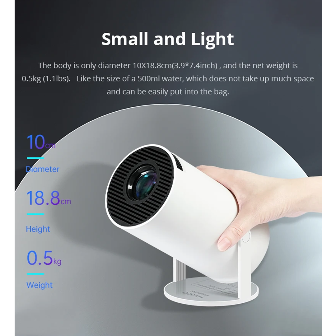 Mini projektor egy előrehaladott hordozható eszköz, melyet otthoni szórakozáshoz és szakmai prezentációkhoz terveztek. Modern és elegáns kerek dizájnnal rendelkezik, mely nemcsak kiváló teljesítményt nyújt, hanem esztétikailag is illeszkedik bármilyen térbe. Számos jellemzője ideálissá teszi széles körű alkalmazásokhoz, beleértve a filmnézést, játékot, üzleti prezentációkat és oktatási célokat.