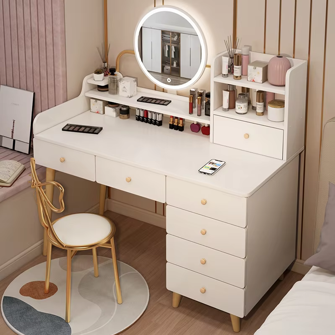 Ez a minimalista északi sminkasztal eleganciát és funkcionalitást hoz minden térbe. Kiváló minőségű forgácslapból készült, fehér színben kapható, ideális esztétikus és modern környezet kialakításához. A 80x40x129 cm-es méret elegendő helyet biztosít a sminkeléshez és rendszerezéshez.