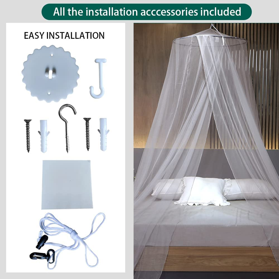 Könnyen használható: Ez a szúnyogháló egy nyílással rendelkezik a könnyű belépéshez. Az összes rögzítőelem a szúnyoghálóra van rögzítve, öntapadós hátlappal és csavaros kampóval van ellátva, így Ön választhatja a felakasztás módját. A kötelekkel beállíthatja a szúnyogháló magasságát, amíg az alsó széle teljesen hozzá nem ér a padlóhoz.