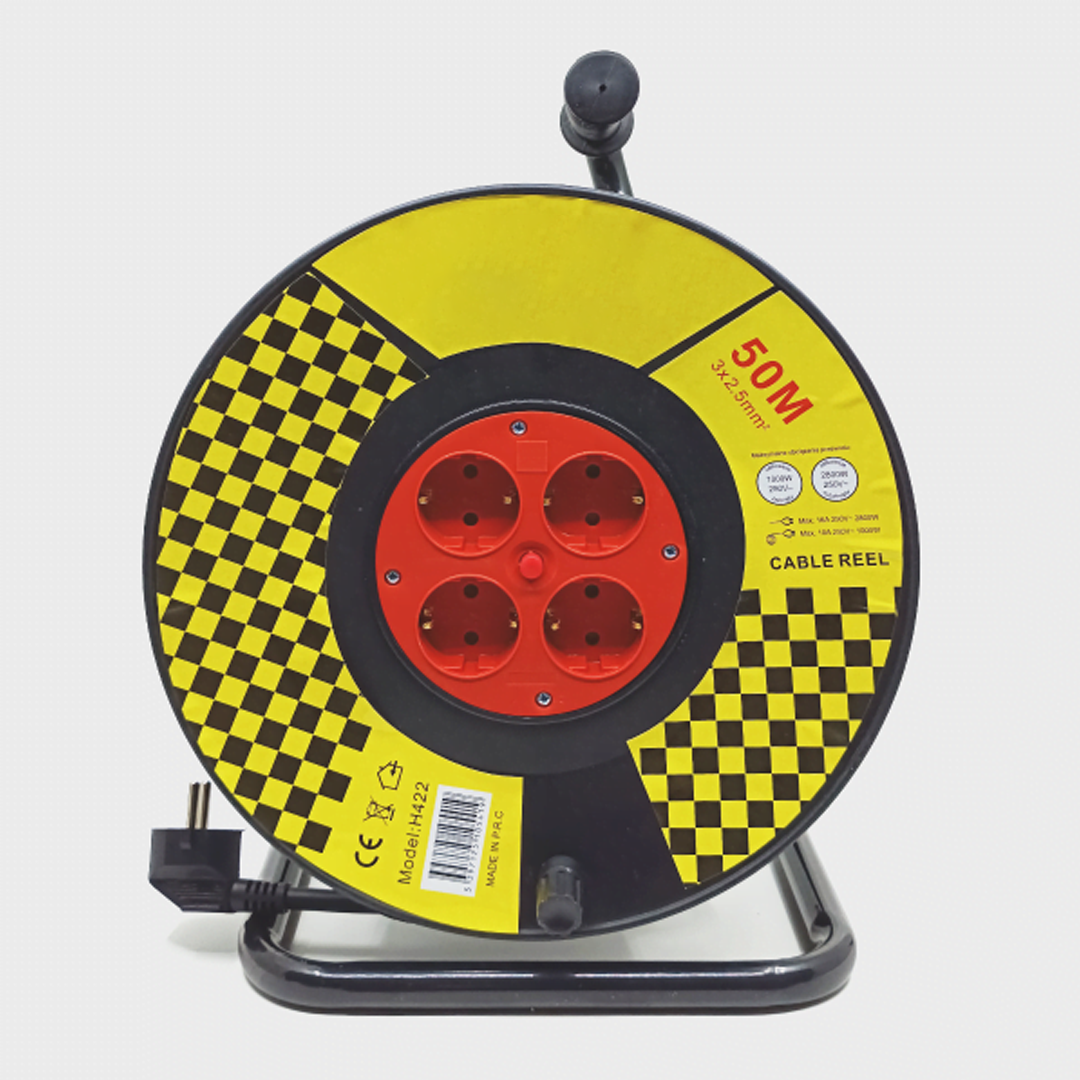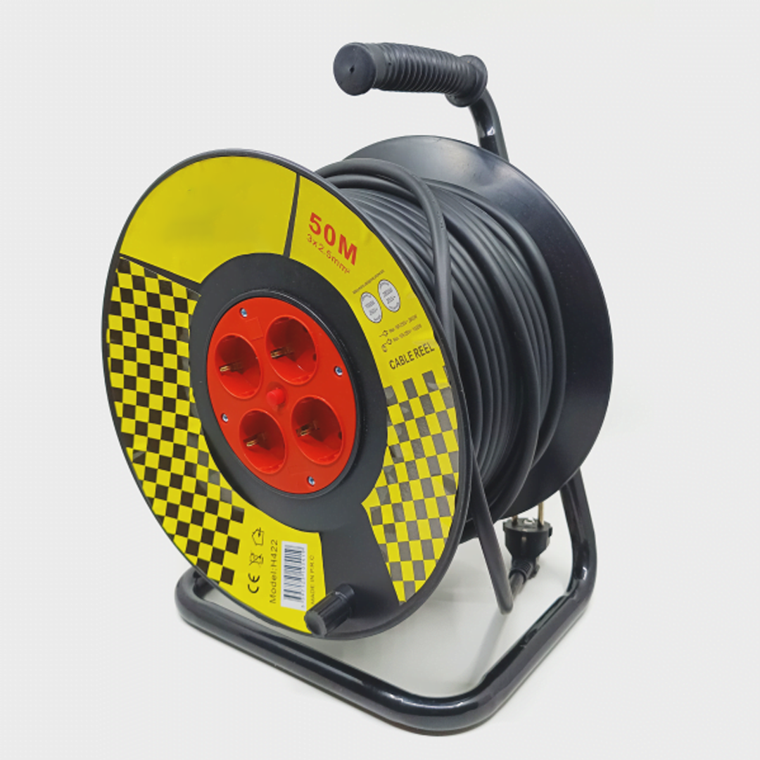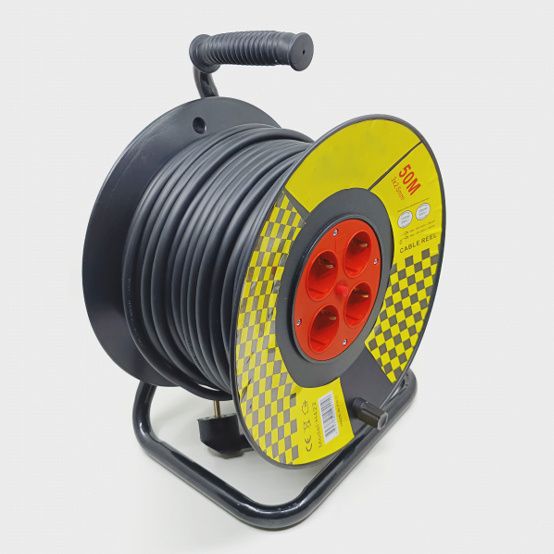 🔄 A könnyű tekerhetőség és kibogozhatóság kerek fogantyúnak köszönhető a hosszabbító kábel tekercsén. A fém tartó biztosítja a tekercs stabilitását és függőleges helyzetben tartását, míg a fogantyú kialakítása lehetővé teszi a kényelmes hordozást az építkezésen vagy a garázsban való tartást.