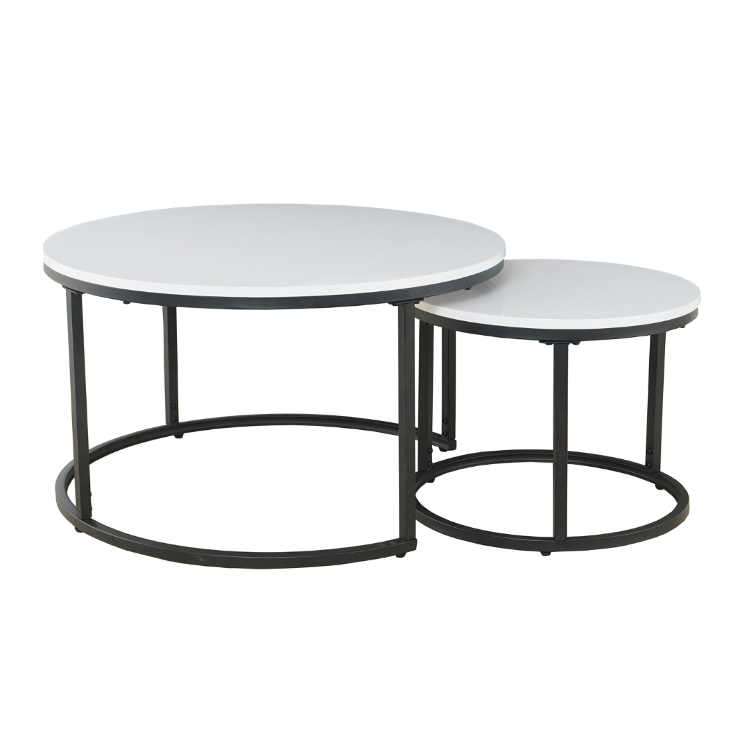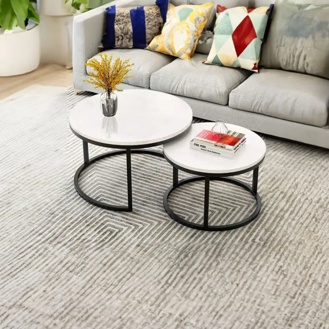 Ezzel kortárs és elegáns pillantást vethet nappalijába egy sor modern dohányzóasztal minimalista dizájn. Kombináció fehér tányérok és fekete fém lábak tökéletesen illeszkedik minden belső térbe – a klasszikustól az ipari stílusig.