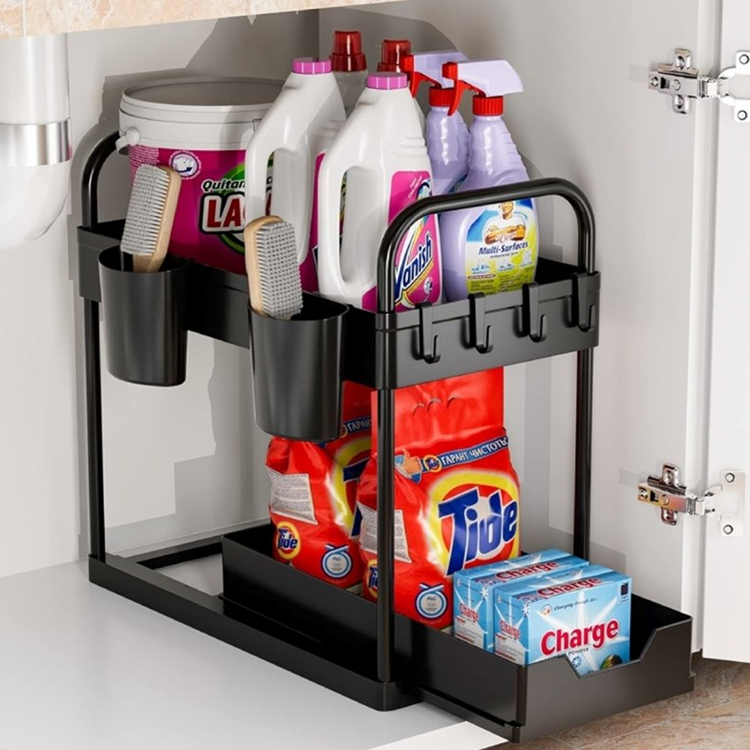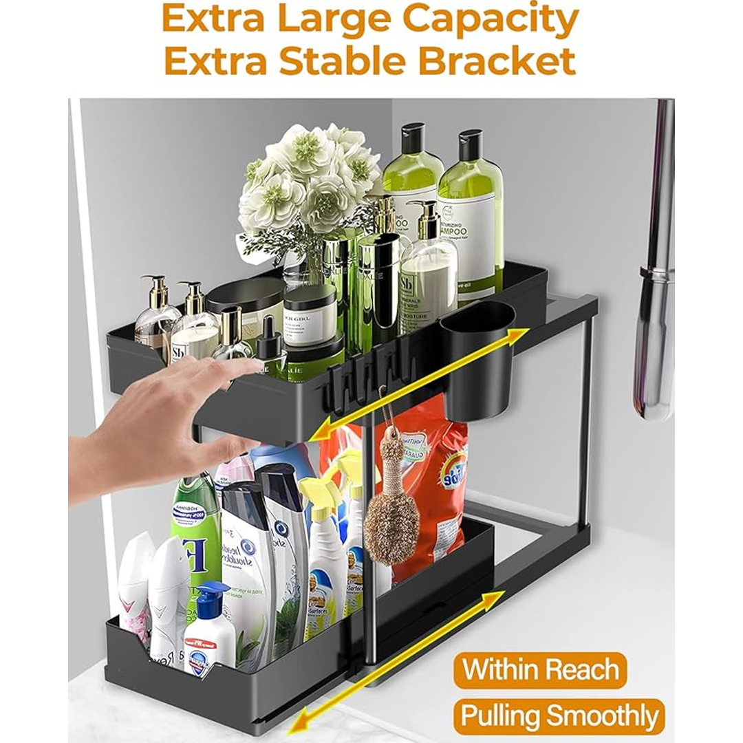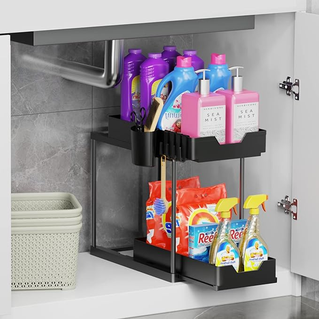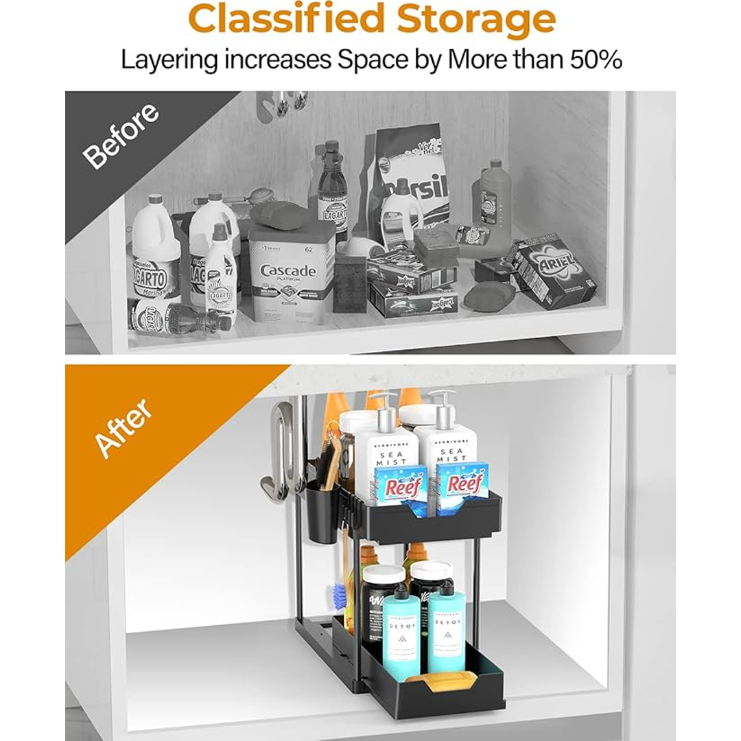 Ez a többfunkciós mosogató alatti szervező ideális mindazok számára, akik maximálisan ki akarják használni a helyet, és rendszerezetten és könnyen elérhetővé szeretnék tartani tárgyaikat.